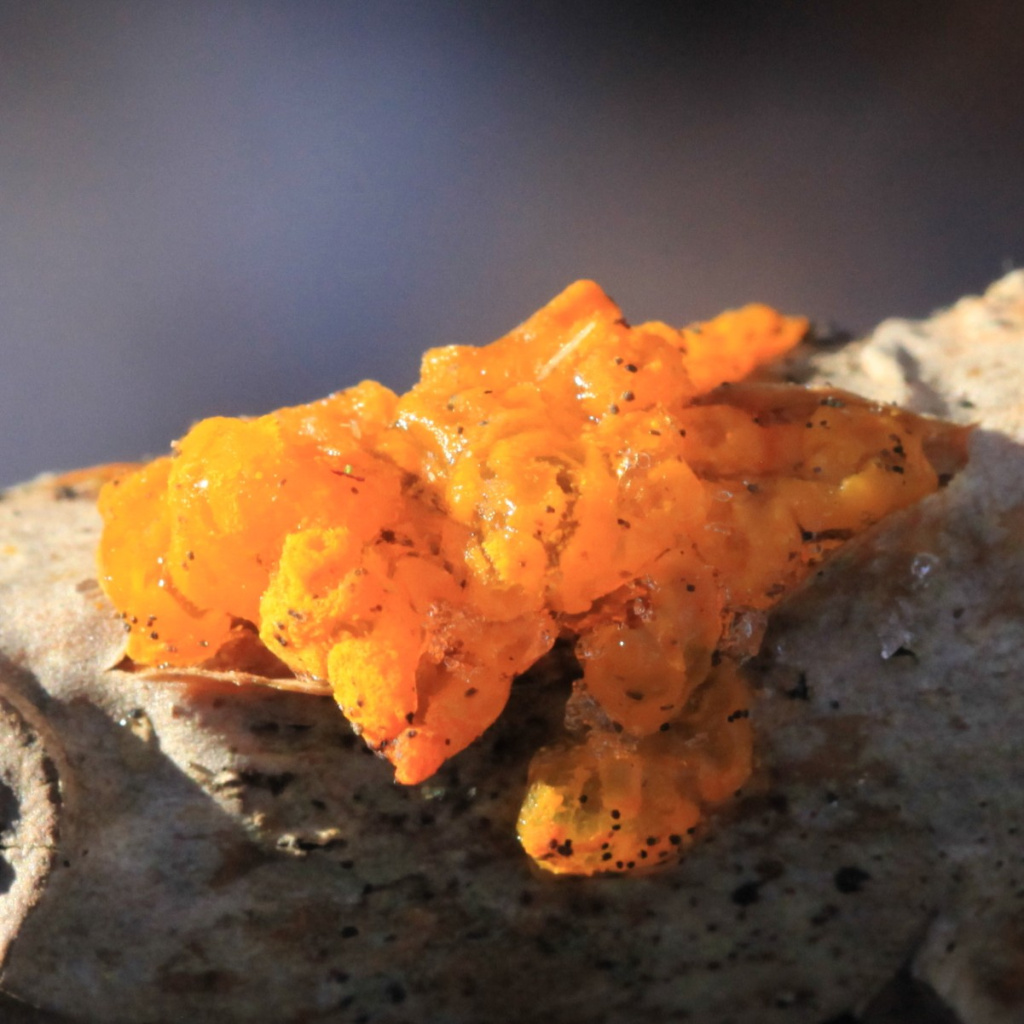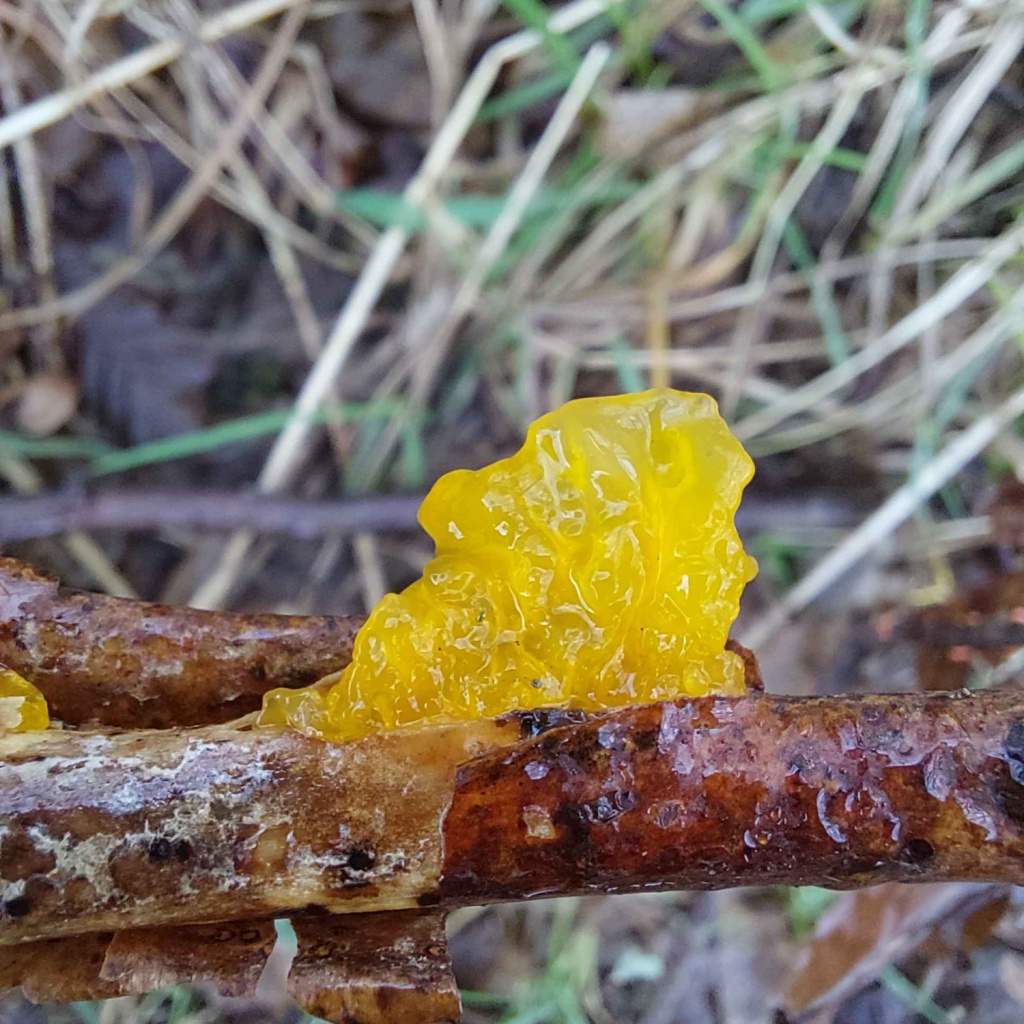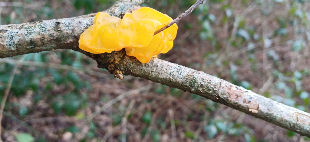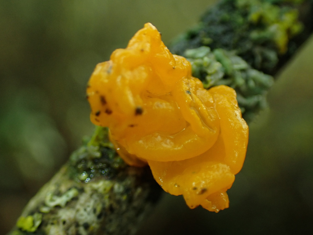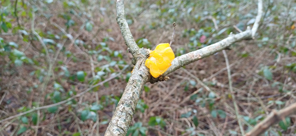 Witches' Butter is found all over the world, found in every continent except Antarctica. On Alderney, it is one example of our autumn fruiting fungi. Many species of fungi help decompose wood, but Witches' Butter is actually a parasite, instead feeding on the mycelium of a different fungus that breaks down dead wood.