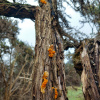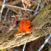 Our species of the month is the Witches' Butter fungus (Tremella mesenterica). Sometimes called Yellow Brain, this striking fungus is found on dead branches. Its name Yellow Brain comes from its irregular lobe-like appearance, while the name Witches' Butter comes from Scandinavian folklore. One story about this name is that witches' "carriers" would forage and steal food to feed the witches, who might then reward them by allowing them to consume some of the food. The carriers were thought to sometimes be so greedy they would regurgitate some of the food back up, leaving golden yellow 'butter' coating dead branches.